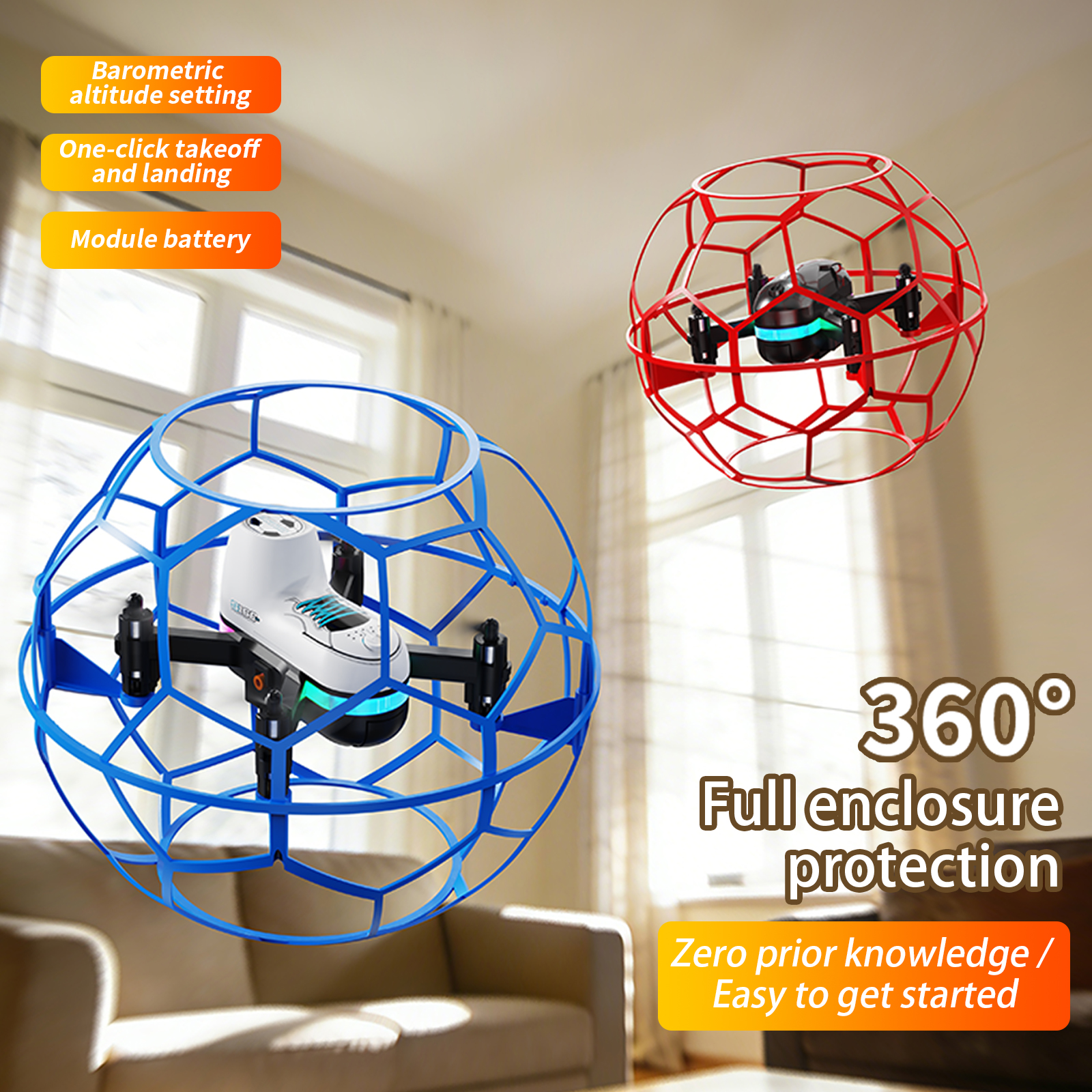 Encased in a revolutionary 360° protective cage, this isn't just a drone; itâs a high-flying, bouncing, flipping, LED-lit adrenaline machine. Perfect for kids, adults, and everyone in between, the FlyBall V51 turns any room or yard into an epic aerial arena.